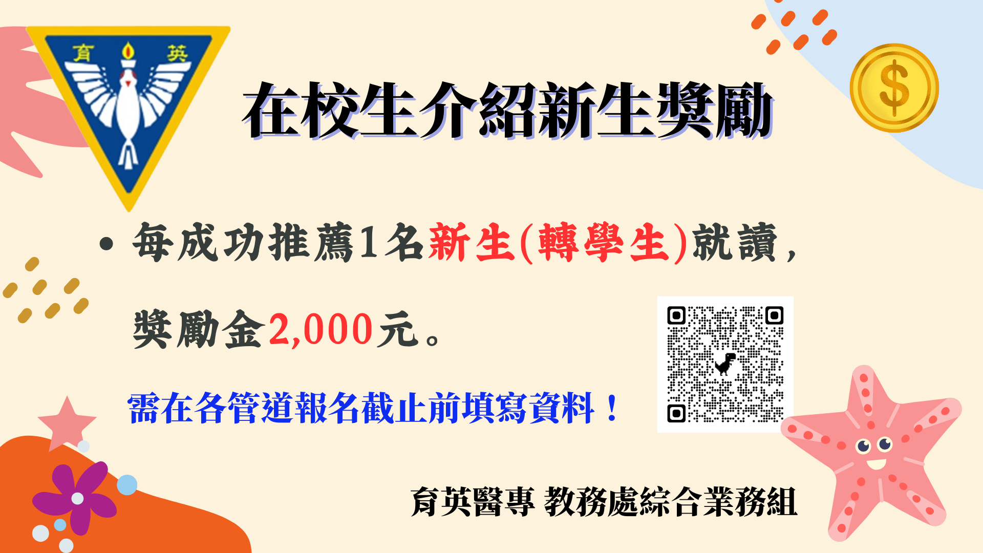 介紹「新生(離島保送生,轉學生)」連結網址https://reurl.cc/gMDDG4(本表需在各入學階段報名截止前填寫完成才能申請獎勵喔!)